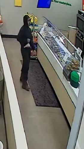 On Sunday 11/09/2025 around 7:00 PM an unknown male entered the subway restaurant in the 212000 block of State Highway 97 in the Village of Stratford. The male went into the bathroom then approached the counter where he lifted his sweatshirt to reveal what appeared to be a black handle of a handgun. The male then pointed to the register. The suspect left the store with just over $100.00 in cash.